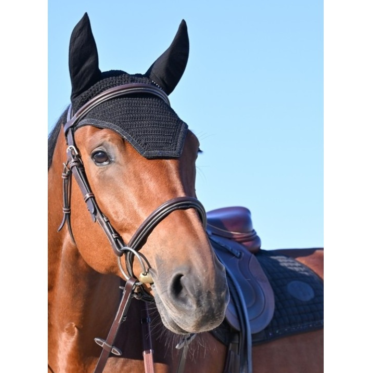 Ce bonnet est un accessoire essentiel pour tous les chevaux gênés par les insectes, les intempéries et aussi, bien souvent, le bruit.