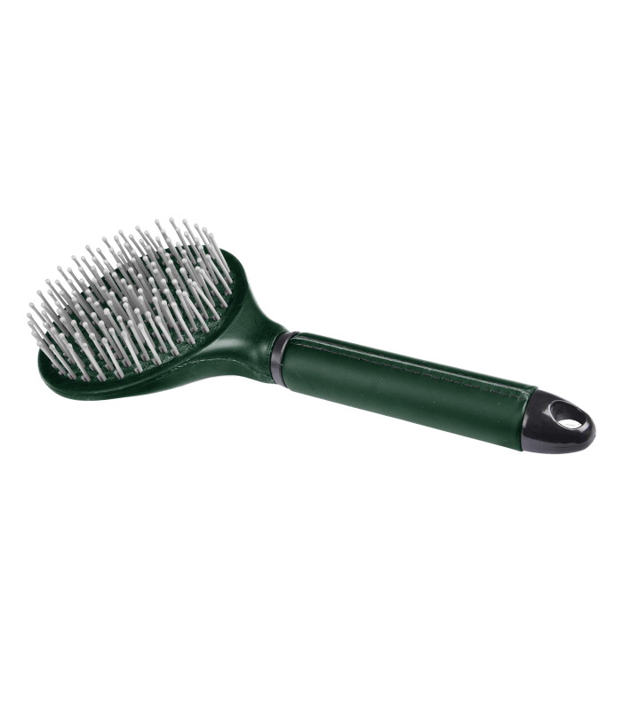 Brosse pour crinière et queue à manche en cuir synthétique de grande qualité.